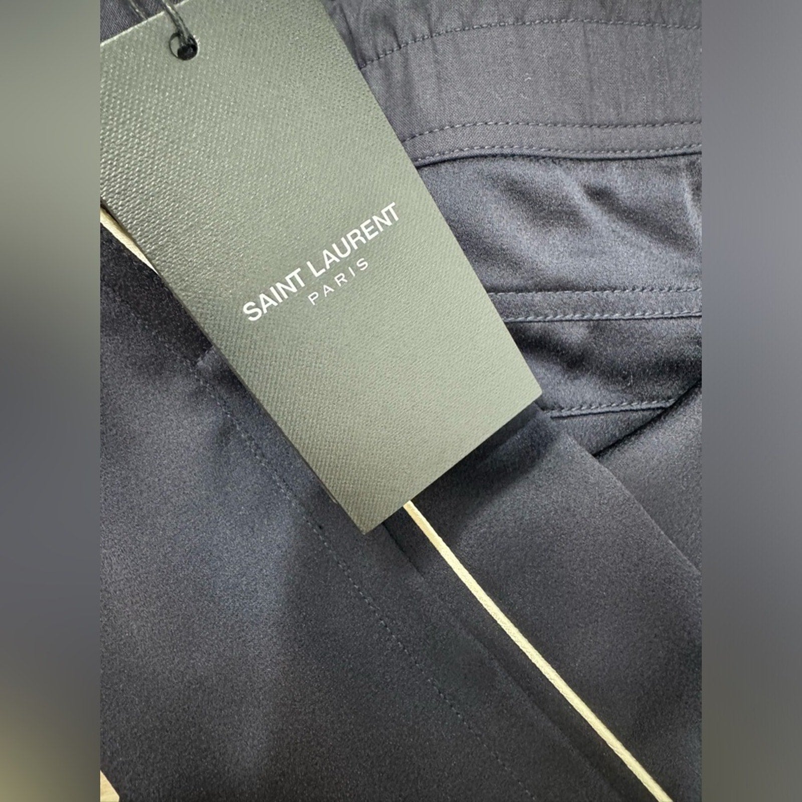 Saint Laurent Navy Piped Satin Jogger Trouser